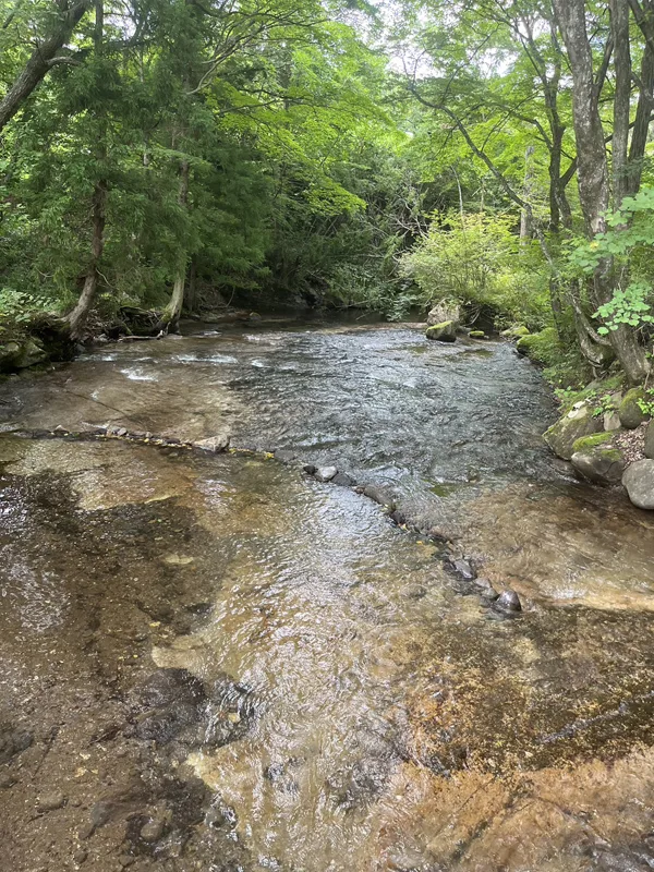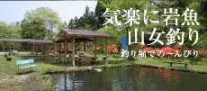清流でのイワナ・ヤマメ釣り体験。釣り竿レンタルあり。釣った魚はBBQで調理することも。